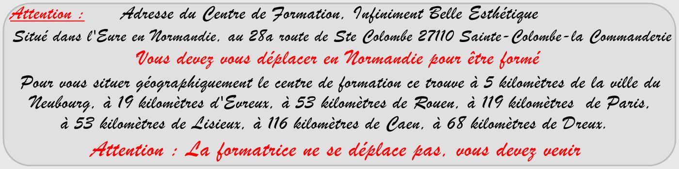 Toutes ces formations,extensions de cils, se font dans l’institut de Beauté Infiniment Belle Esthétique avec Alexandra sous le numéro de formatrice (Déclaration d’activité enregistrée sous le numéro 2111702211117 auprès de la (DIRECCTE), Tél : 02 27 34 26 42.